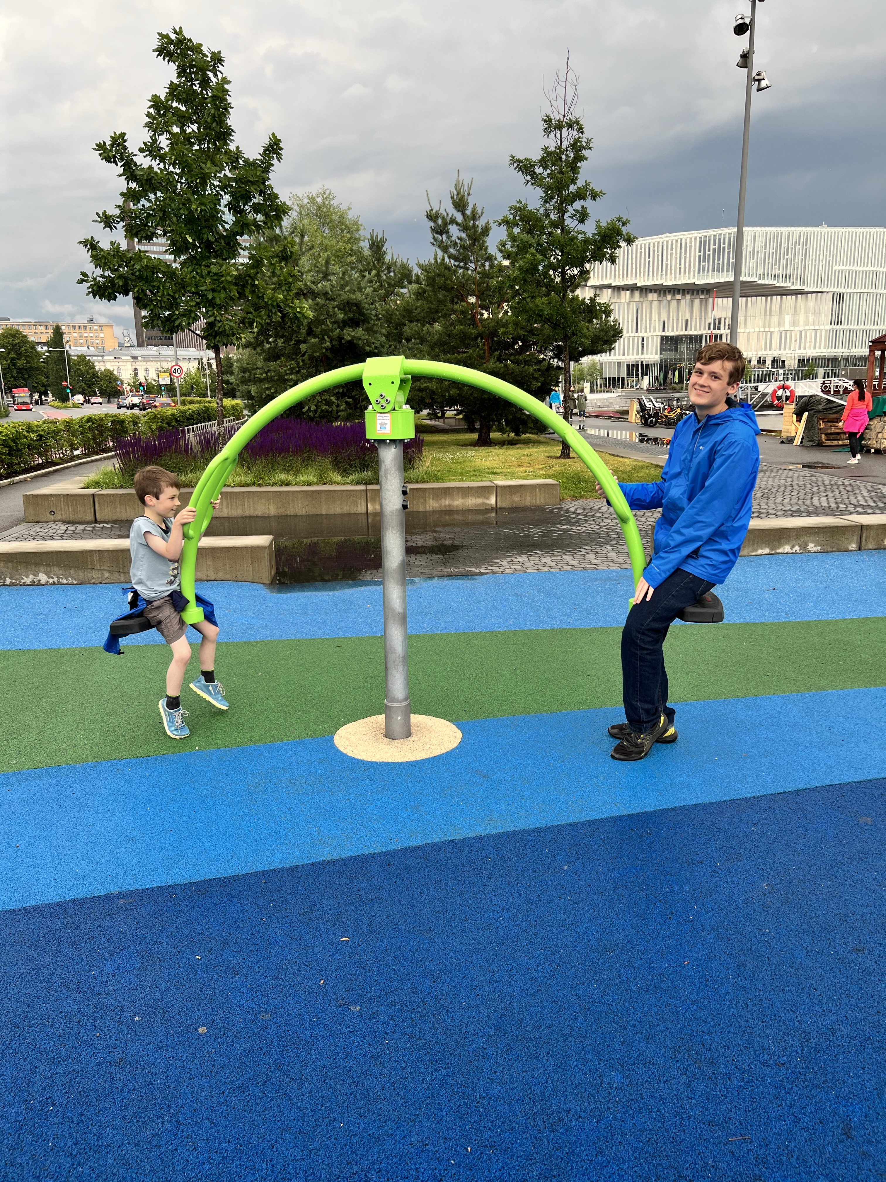 Well, as often happens, sleep on the airplane did not happen for most of us. To Murphy‘a delight, Oslo has many little playgrounds all over the city; including one right outside the central train station. You can’t do much better than a playground & ice cream after a long flight. We made it until 6:00 pm before all crashing. Of course Murphy & I were up sitting on the beautiful balcony at 2:00 am, but it was nice to see the city as it,mostly, slept.