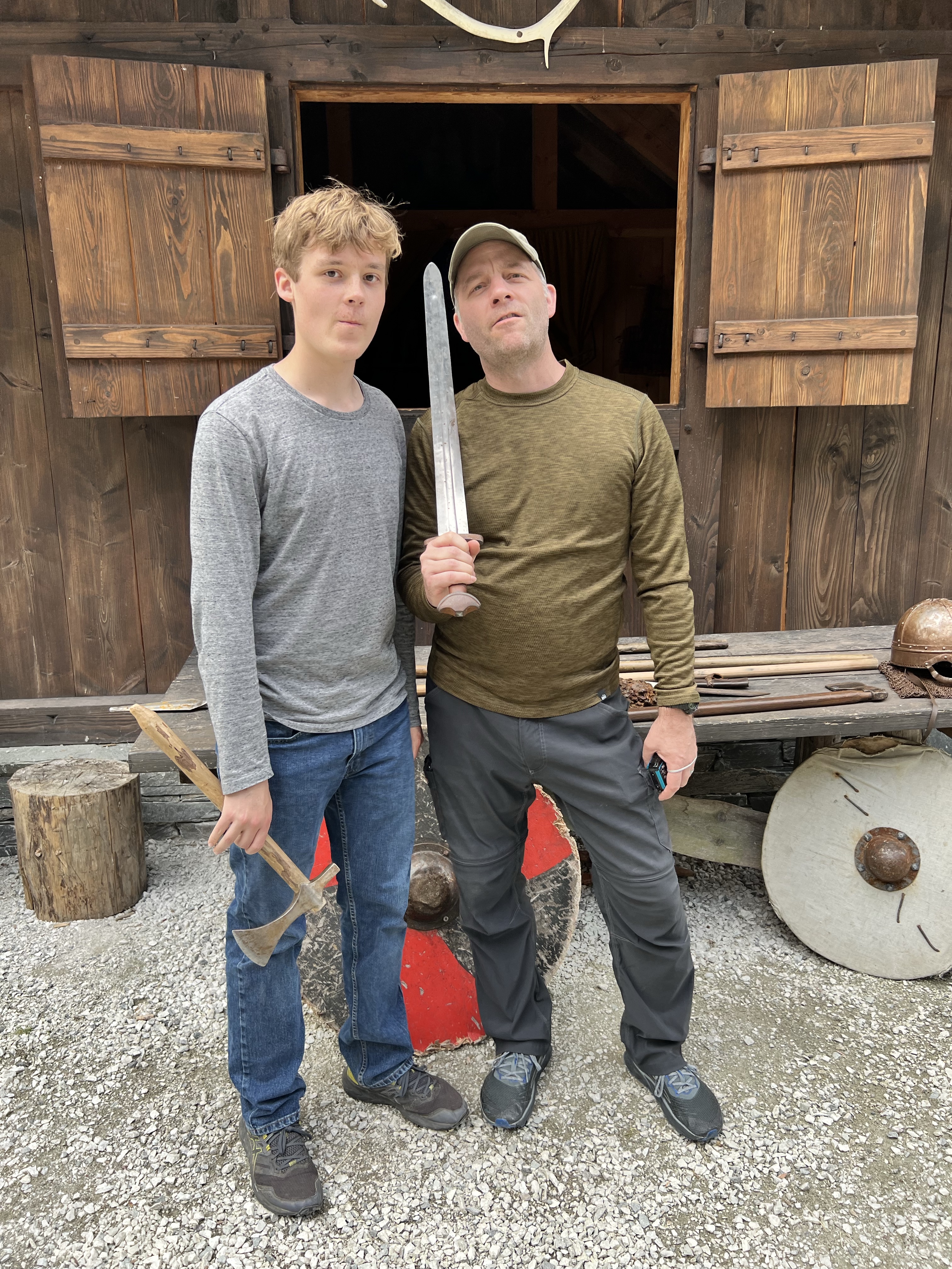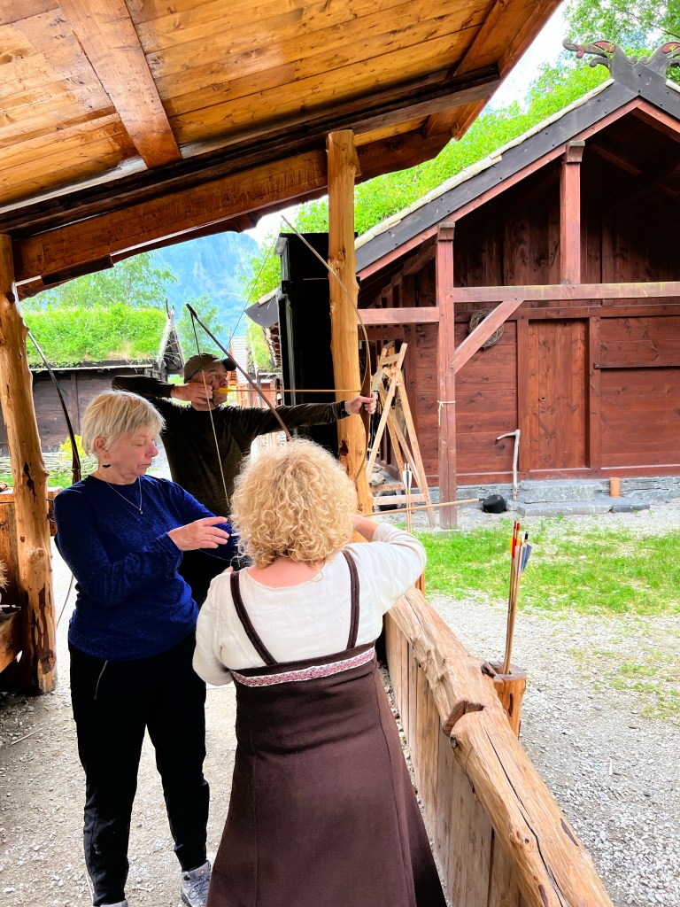 The next day we motored into the fjord on a ship. This fantastic adventure continued on land at Gudvangen and a traditional Viking village. We learned about weaving, boat-making, archery, & axe throwing. (Not to brag, but I ruled at axe throwing. Apparently I was so amazing that nobody could take their eyes off my throwing long enough for pictures.😄) Rowan even found a Viking game he knew how to play. It was an incredible day! A bus and another train ride brought us to the city of Bergen on the West coast of Norway.