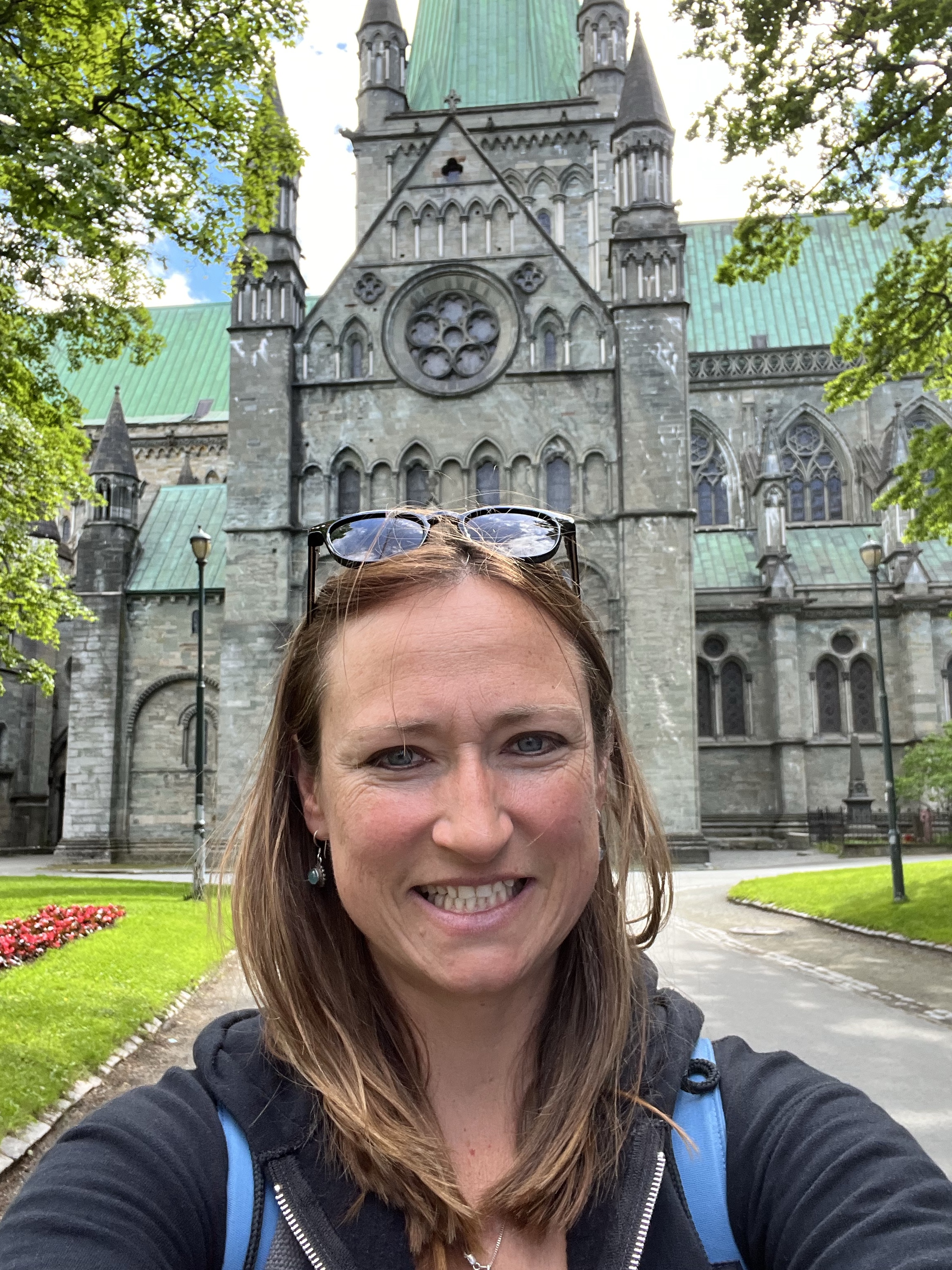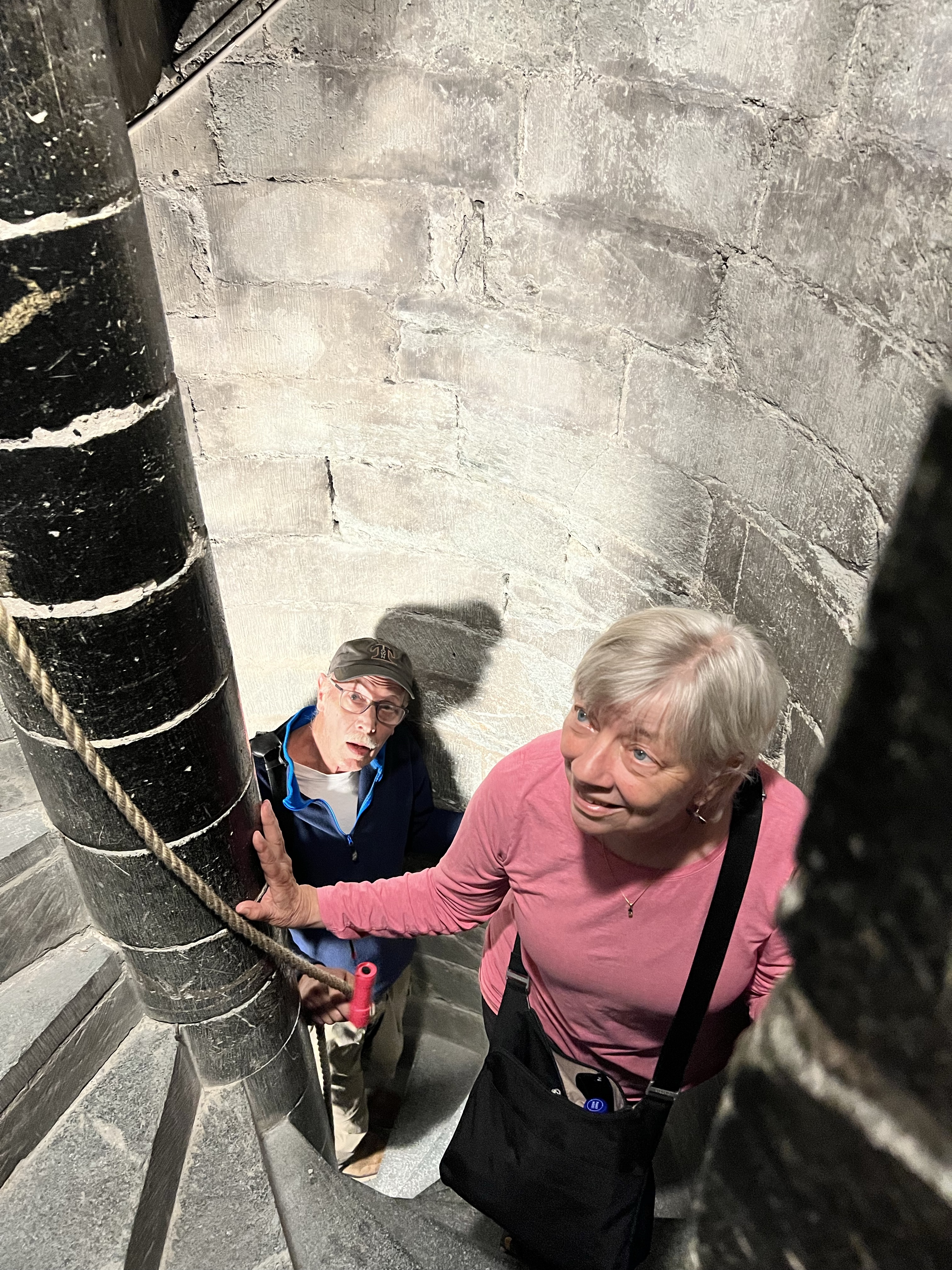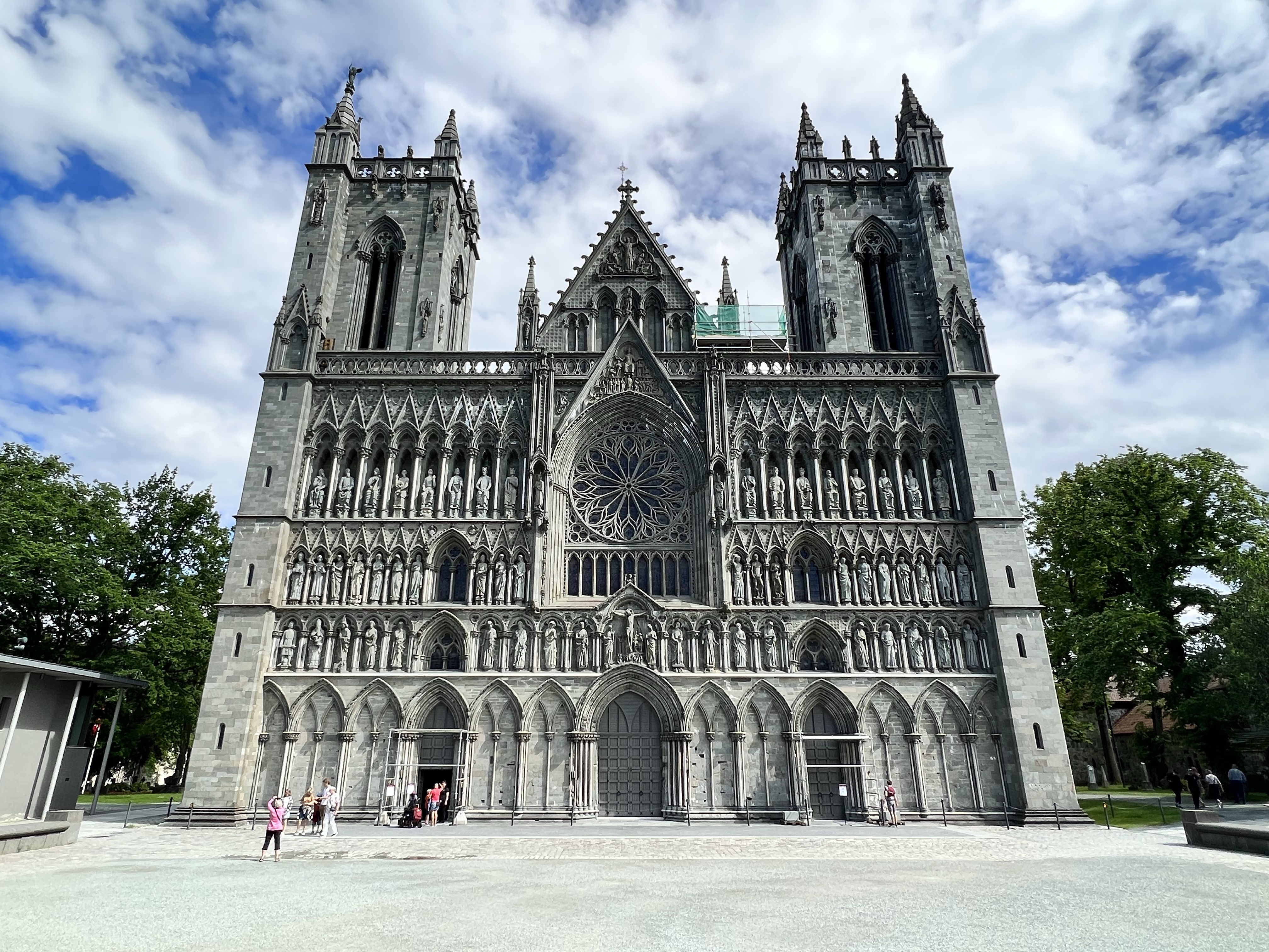 The bus/train ride north from Ålesund to Tronheim was a lovely way to see the countryside the way the locals do. Our train stopped in Dombås, where we ate lunch. In Trondheim we took a guided-walking tour that ended with a private tour into the seldom seen parts of the cathedral. These included the crypt & the towers.