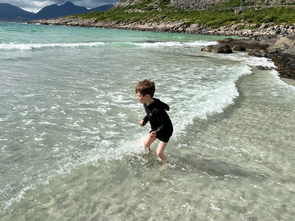 After the visit to Aalan Gård, we headed to Henningsvær to check it out. It was worth it! The drive was absolutely amazing! We stopped by the most beautiful beach and ran in the Norwegian Sea on our way back. Our final stop of the day was at a Viking Museum with some awesome wild boar to visit.