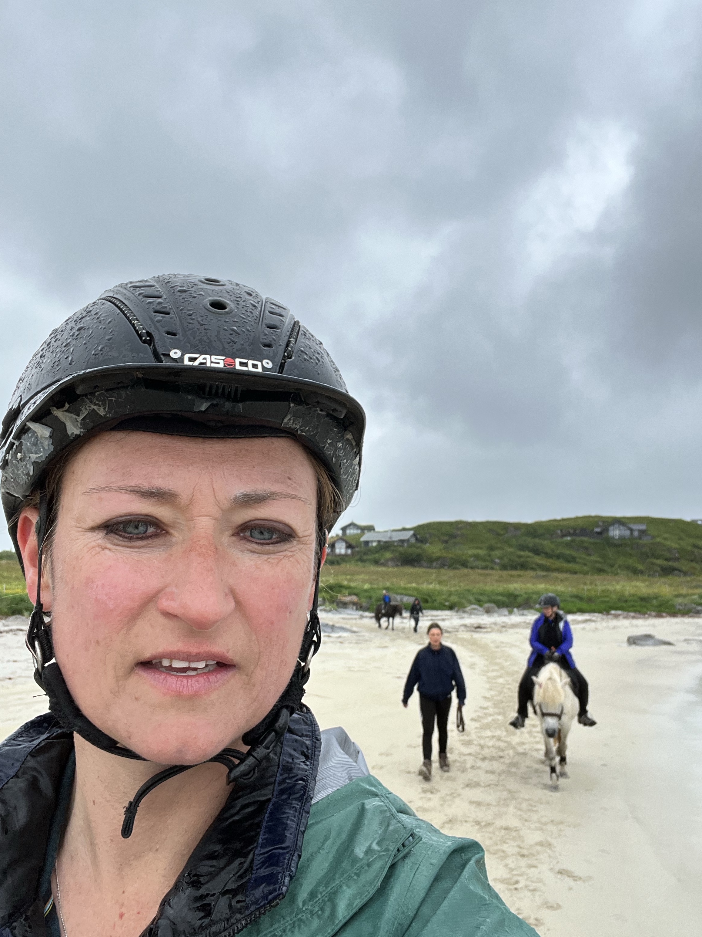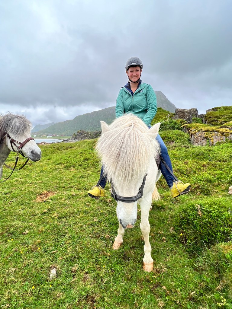 Our third day was absolutely fantastic! At Hov Gård, we got to ride Icelandic horses (We were informed that really they were Norwegian horses when the Vikings took them over to Iceland. They came back Icelandic horses😊) All I know is that they were perfect. Our horses were: Idi, Hrimnir, Tvistur, Frida, Vetur, Heidiros, and Ophelia. Everyone walked away loving those horses & the ride. We rode on the beach as waves crashed around us! We rode up & down rocky paths where our sure-footed steeds proved that they knew their way around. And, we ended by running a couple laps around their track. I would do this again in a heartbeat!!!!!