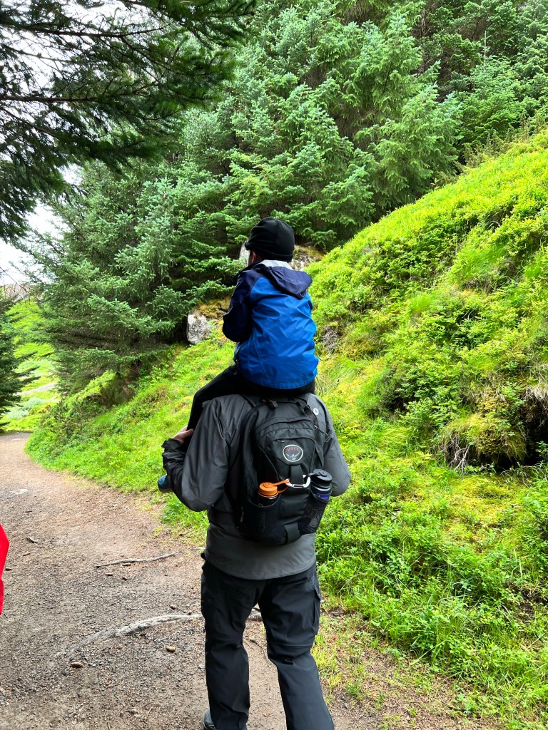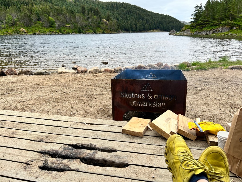 Our final day in Lofoten was Jesse’s & my wedding anniversary! We were supposed to kayak. The weather didn’t agree with that (too windy on the water), so our guide Jonás, offered us a chance to go for a hike. This turned out to be a great outing that we were all glad we were able to experience. We hiked into a lake where we fished (Ed was the only one to catch a fish) and ate lunch around a campfire.