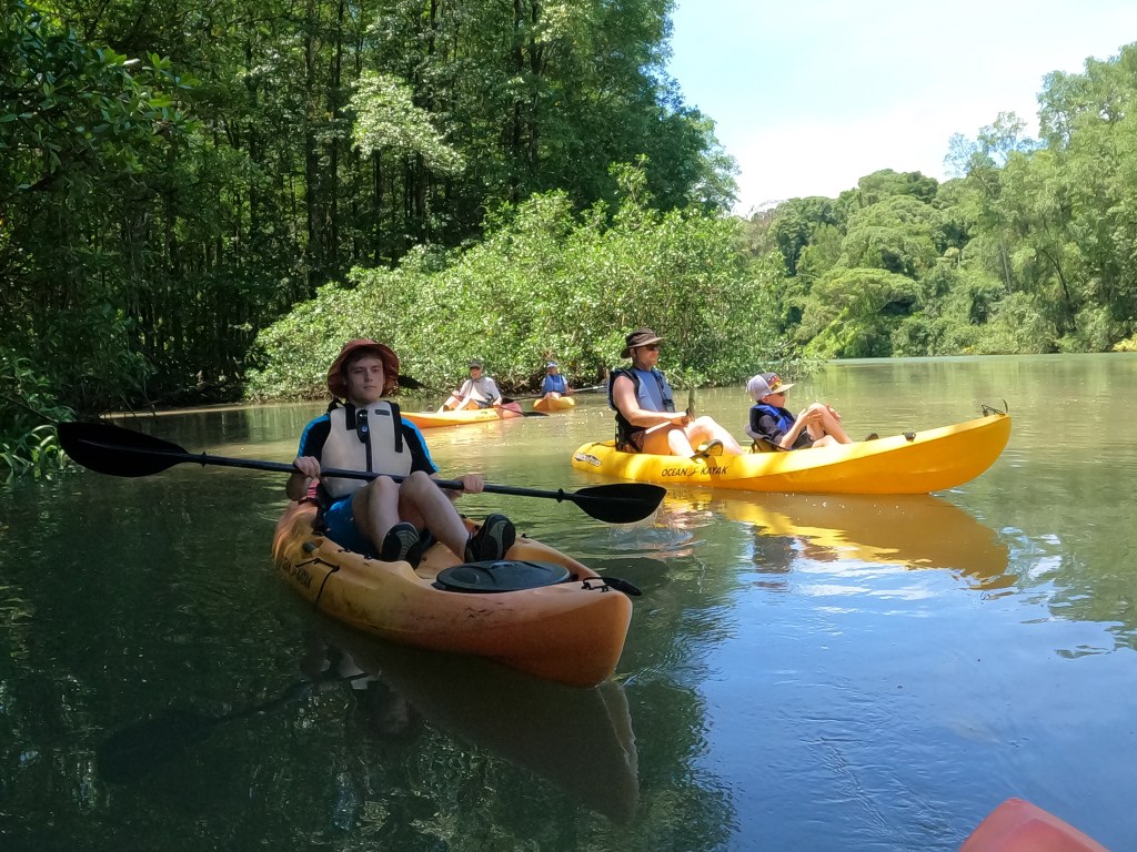 Today was our day to kayak down a river and through the mangroves. While we didn’t see a lot of wildlife in the mangroves, we saw some amazing trees, roots, and waterways. Of course, on our way to see the mangroves and kayak through them, we did see some bottlenose dolphins that decided they wanted to play with the kayaks we were towing behind the boat. The bottlenose dolphins were the ones we had not seen on our motorboat dolphin tour, so it was nice of them to show up for us on this day. Since crocodiles were on the list of animals we might see, I was okay with not seeing many animals… we did see some mini blue heron. I didn’t even know there were mini blue heron, or that I needed to see them, until I saw them. They were adorable and beautiful at the same time. Most of our kayaking experience is explained much better through the beautiful pictures.