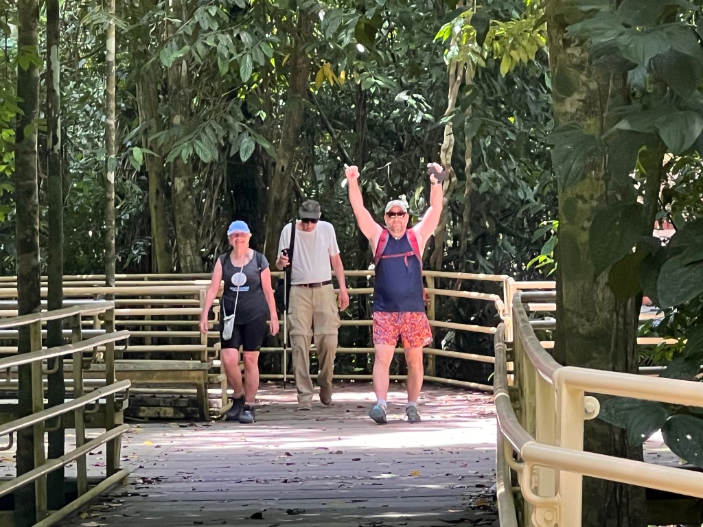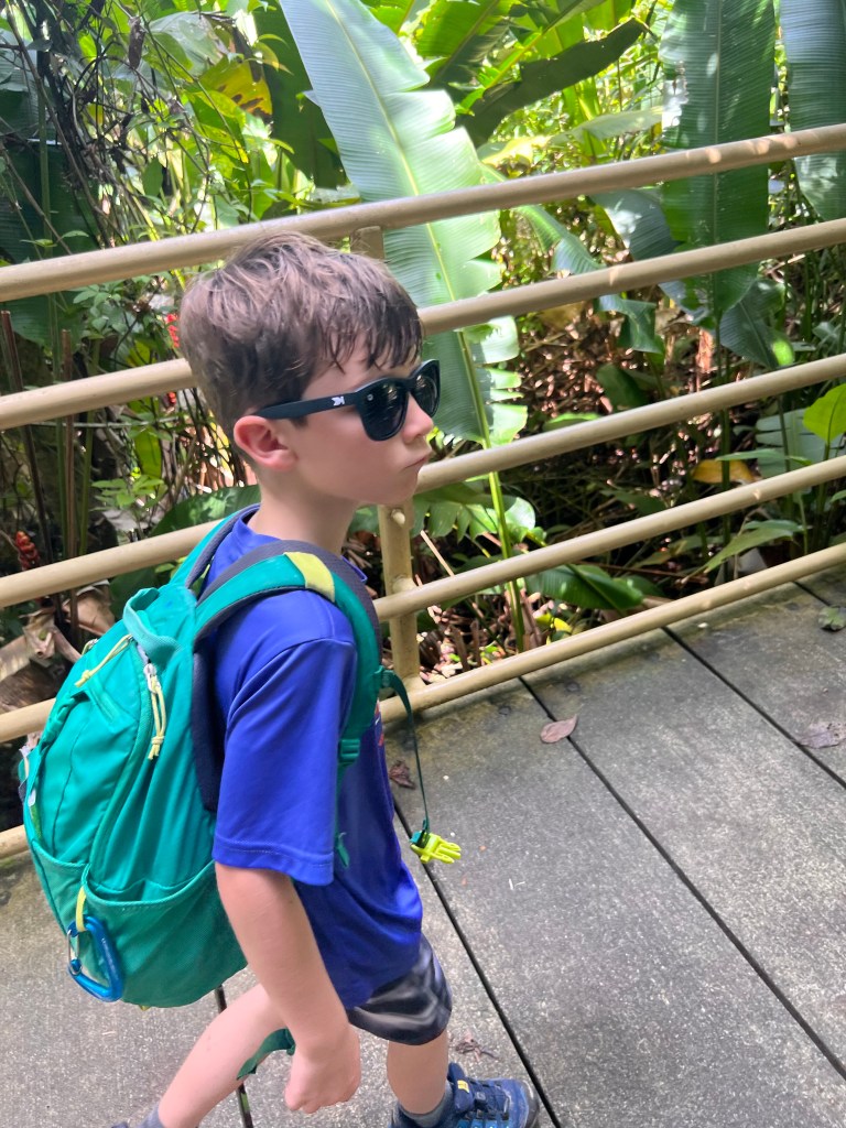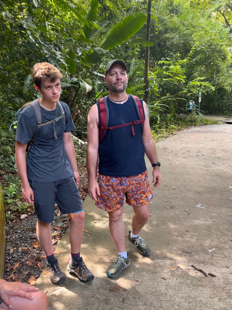 This next part of our journey has taken us to very different experience. We left Playa Cativo & Cativo Lodge, where we were pretty secluded, and came to Quepo, which is a city and there are tons of people. It is hard to compare the two experiences because they are such different places. Quepo is right next to Manuel Antonio National Park. Rather than hiking in steep terrain, where we saw no other people but those who were with us, Manuel Antonio National Park was full of people & animals, and felt more like the experience you would have at a zoo or wildlife park. How are small to a group contained a young woman from Germany, a couple from England, and three women from Spain, as well as us. Our guide was very nice and obviously knew the park. We even got to spend some time halfway through our tour swimming in the ocean. Rowan spent that time writing in his journal and Murphy spent that time building a Sandcastle that continually got wiped out by waves.