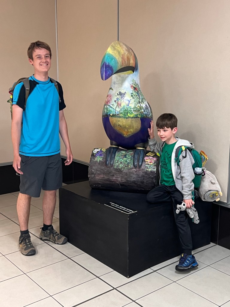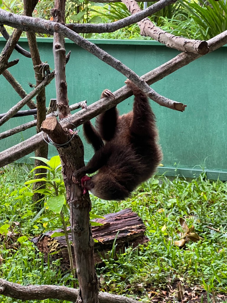 Good afternoon! It is a beautiful, humid day in Coastal Rica. I’m hot, exhausted, and content. We flew into San Jose at about 11:20 pm, got to the hotel room around 12:30, then had to get up at 6:30. This accounts for the tired part. On our first day, we went to the Toucan Rescue Ranch for a tour. It was amazing seeing the toucans, sloths, capuchin monkeys, and all the other animals they rescue & work hard to send back to the wild. Of course there are those animals that are permanently damaged or were illegal pets & cannot return to the wild for their own safety.